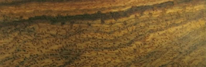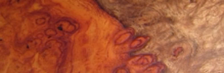 Es gibt ca.30000 Baumarten auf der Erde und ca. 100.000 Holzarten, von denen allerdings nur ca. 200-300 wirtschaftlich genutzt werden. Ich arbeite mit ca. 80 verschiedenen Hölzern, von denen die wichtigsten hier aufgelistet sind. Mein Bestand ist in den letzen 33 Jahren stetig gewachsen. Alle gezeigten Hölzer sind naturbelassen und nicht gefärbt, zweifarbige Hölzer sind nicht verleimt, sondern tatsächlich so gewachsen. Die hier gezeigten Fotos sind alles Originale aus meinem Fundus, sie dienen jedoch nur zur groben Auswahl und können abweichend sein bei der Anfertigung eines Schmuckstücks. Nicht von allen Hölzern habe ich ausreichend Bestand.